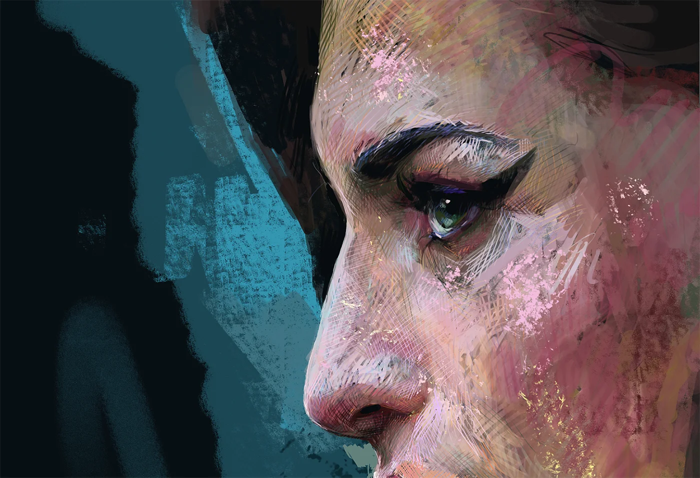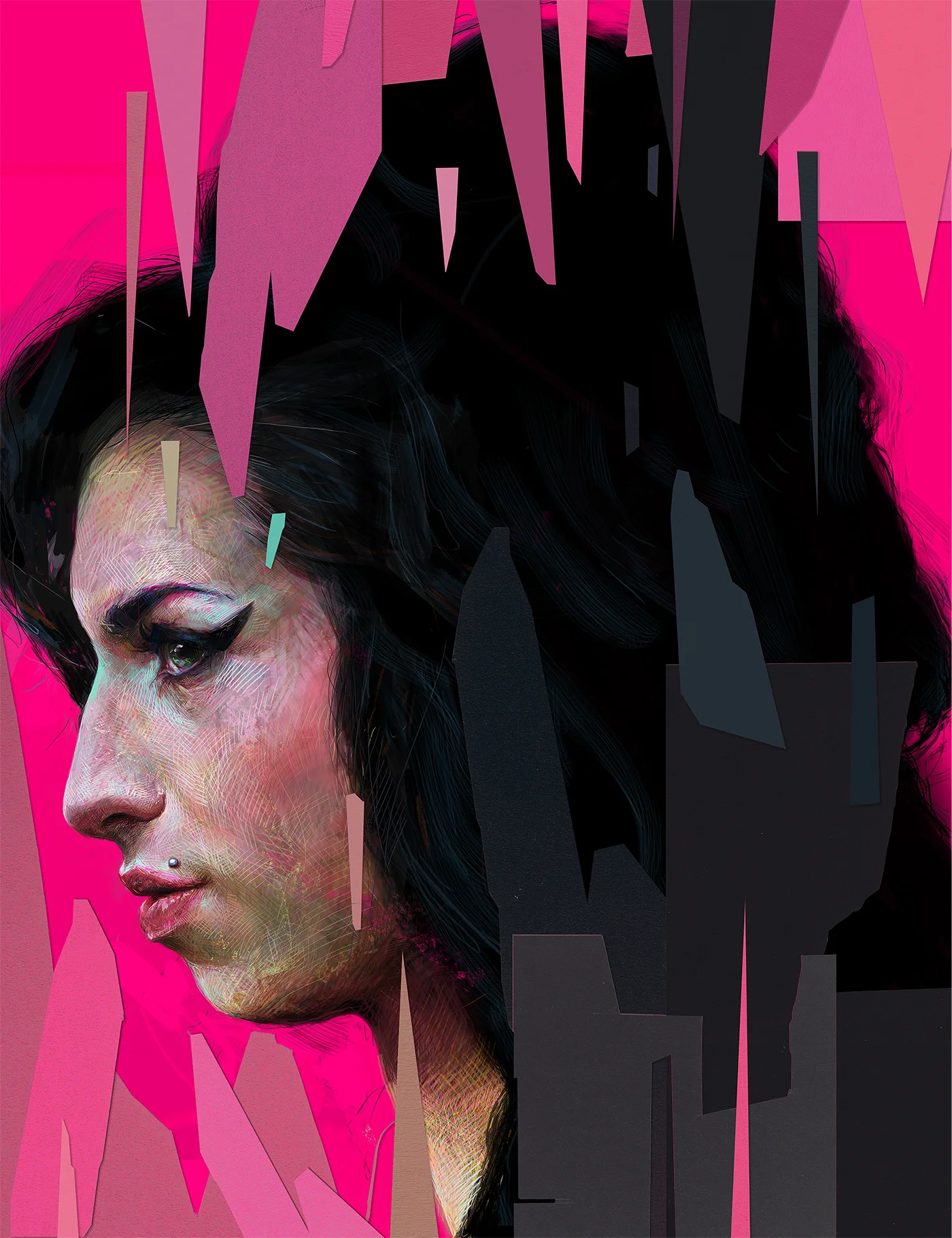 Digital painting with paper cut details