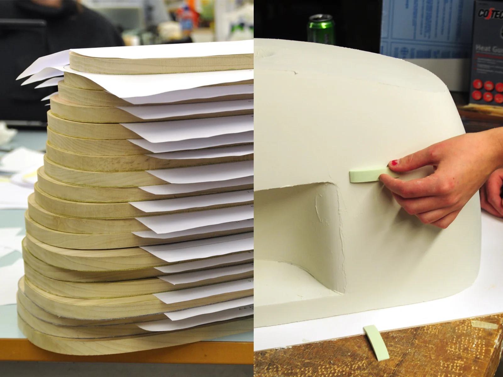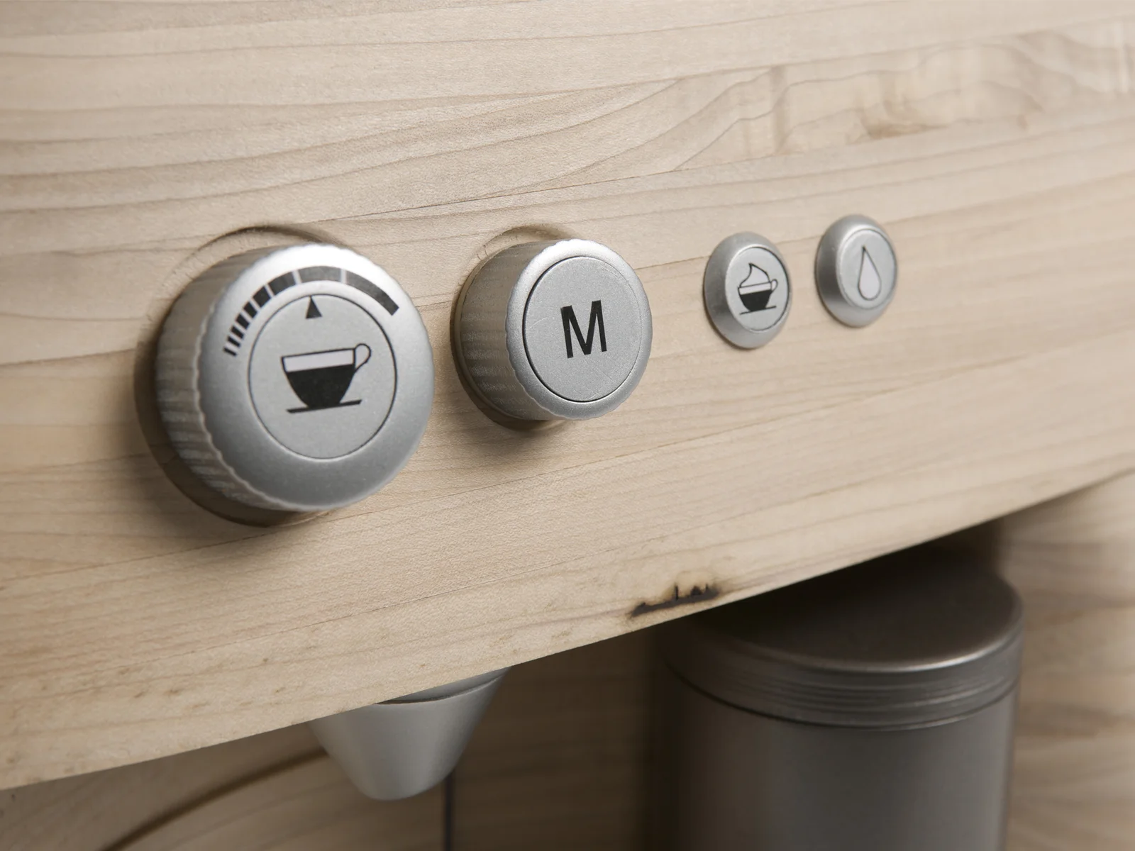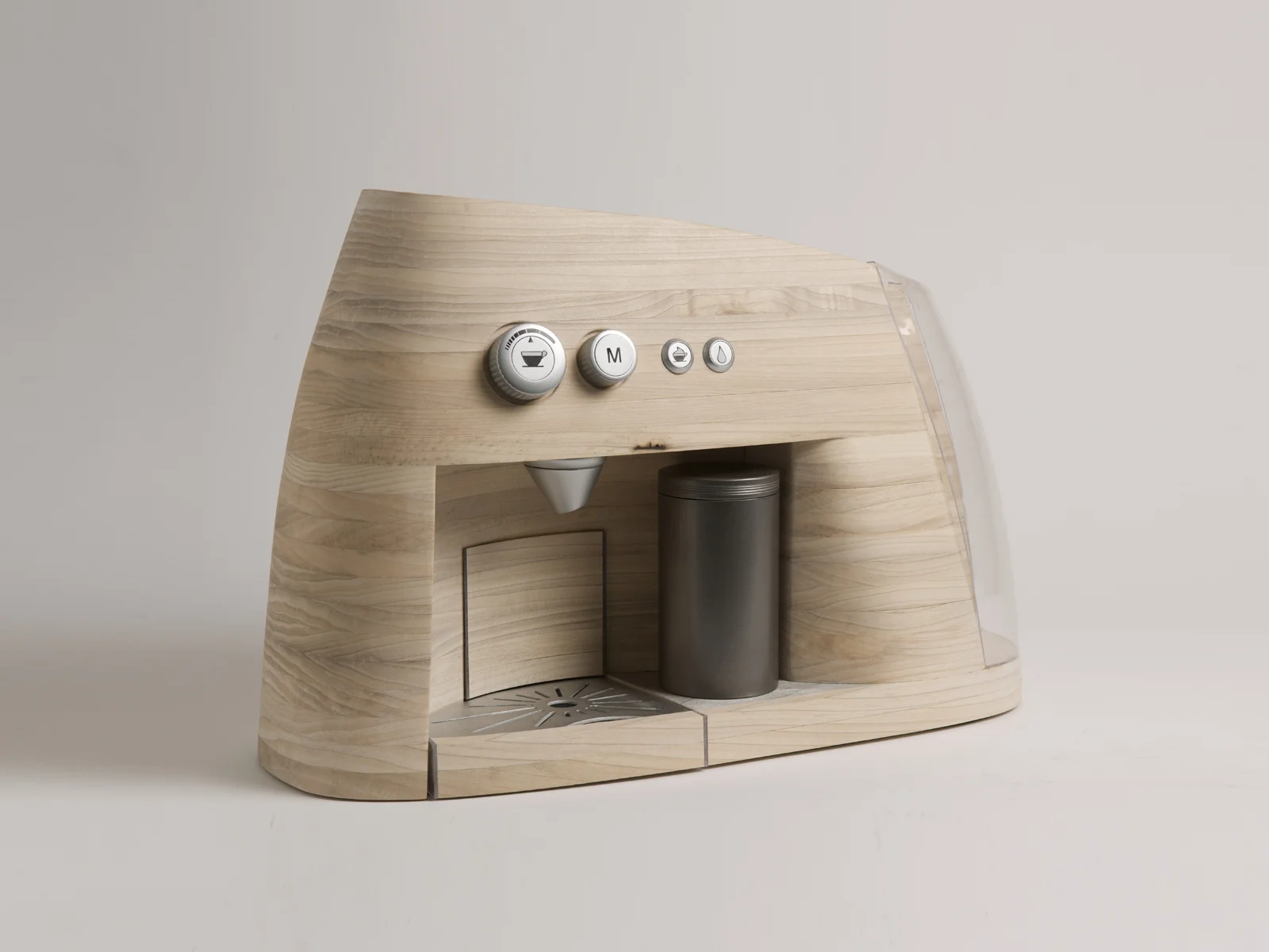 After deciding the overall design of the machine, we made a prototype which we presented to a focus group. We also made paper prototypes of the control panel. Changes were made on the basis of the feedback we received. The final model is made of layers of poplar wood which are sanded down and glued together.